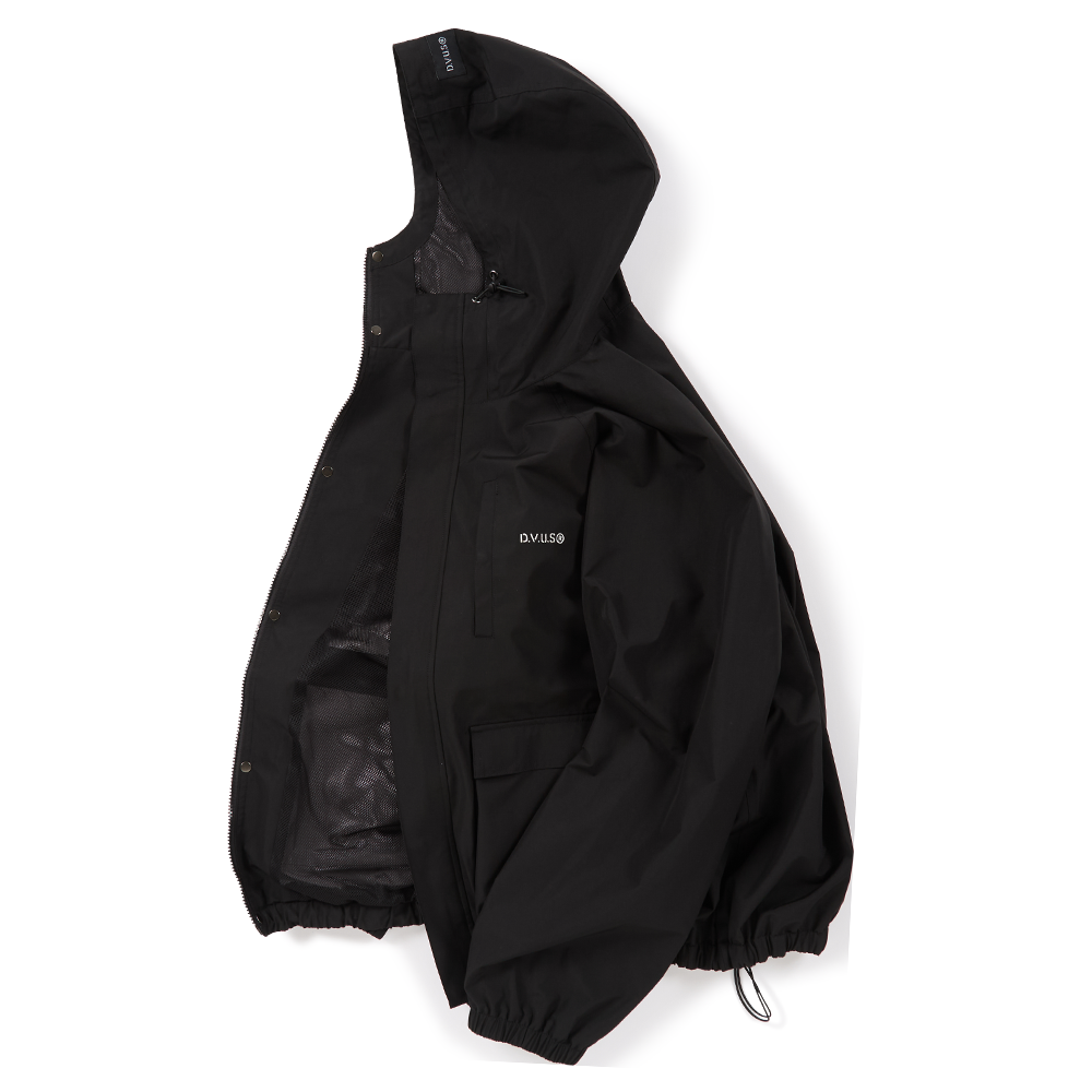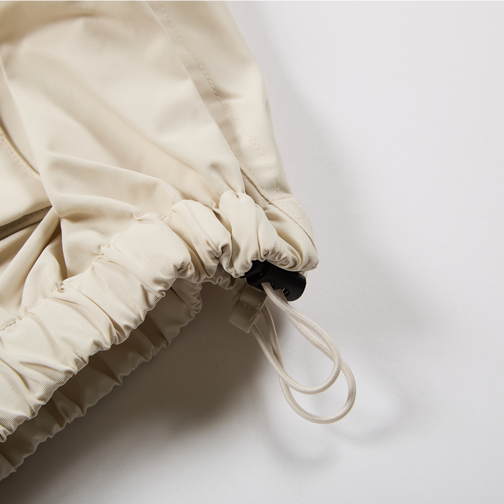 裾部分とフードのドローコードで