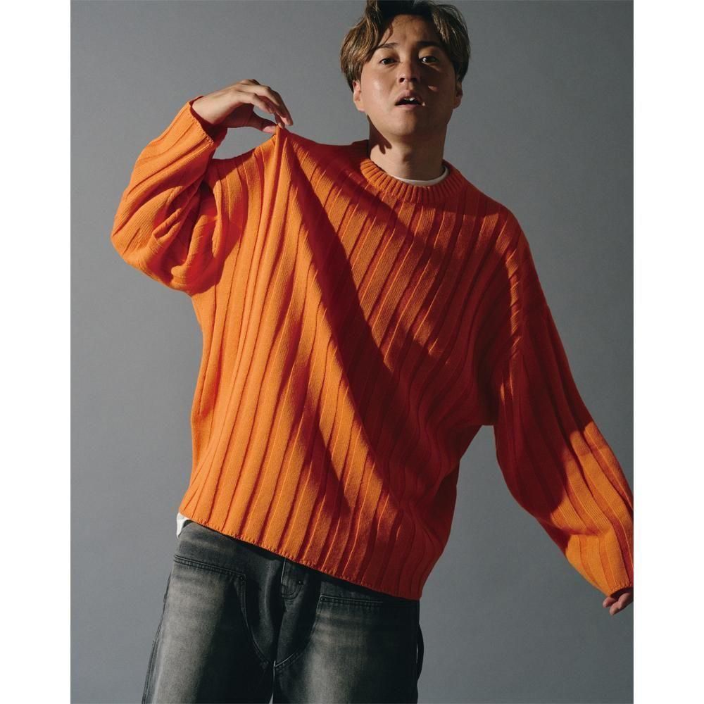 ほどよくルーズなシルエットでやや薄手のニット素材